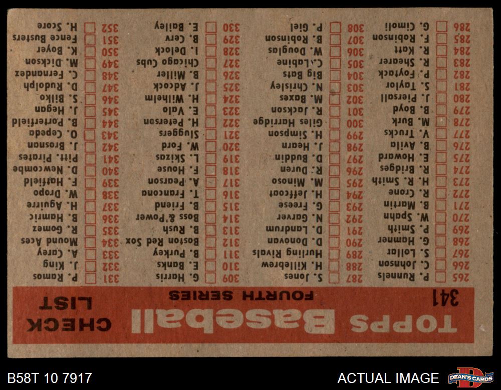 1958 Topps #341 Pirates Team Checklist 2 - GOOD