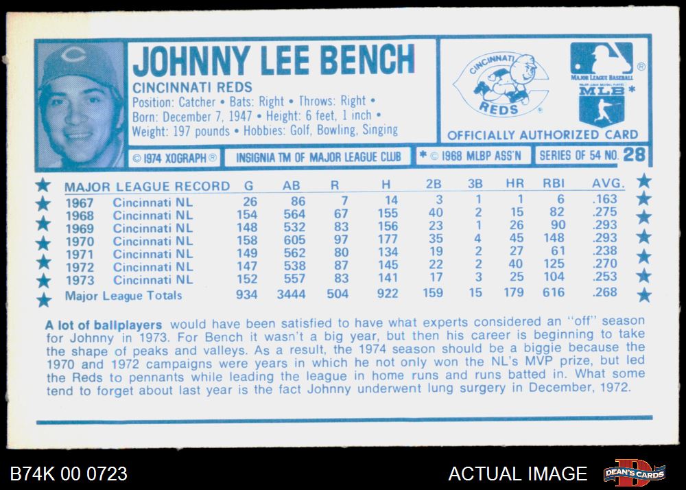 1974 Kellogg's #28 Johnny Bench
