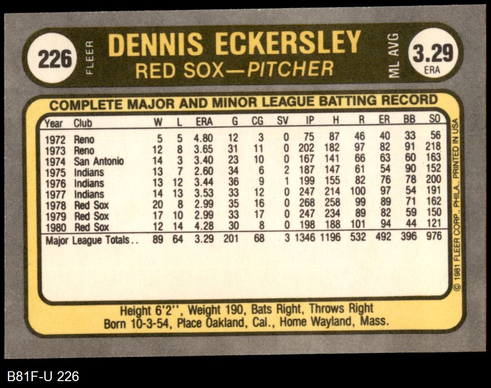 1981 Fleer #226 Dennis Eckersley 8 - NM/MT