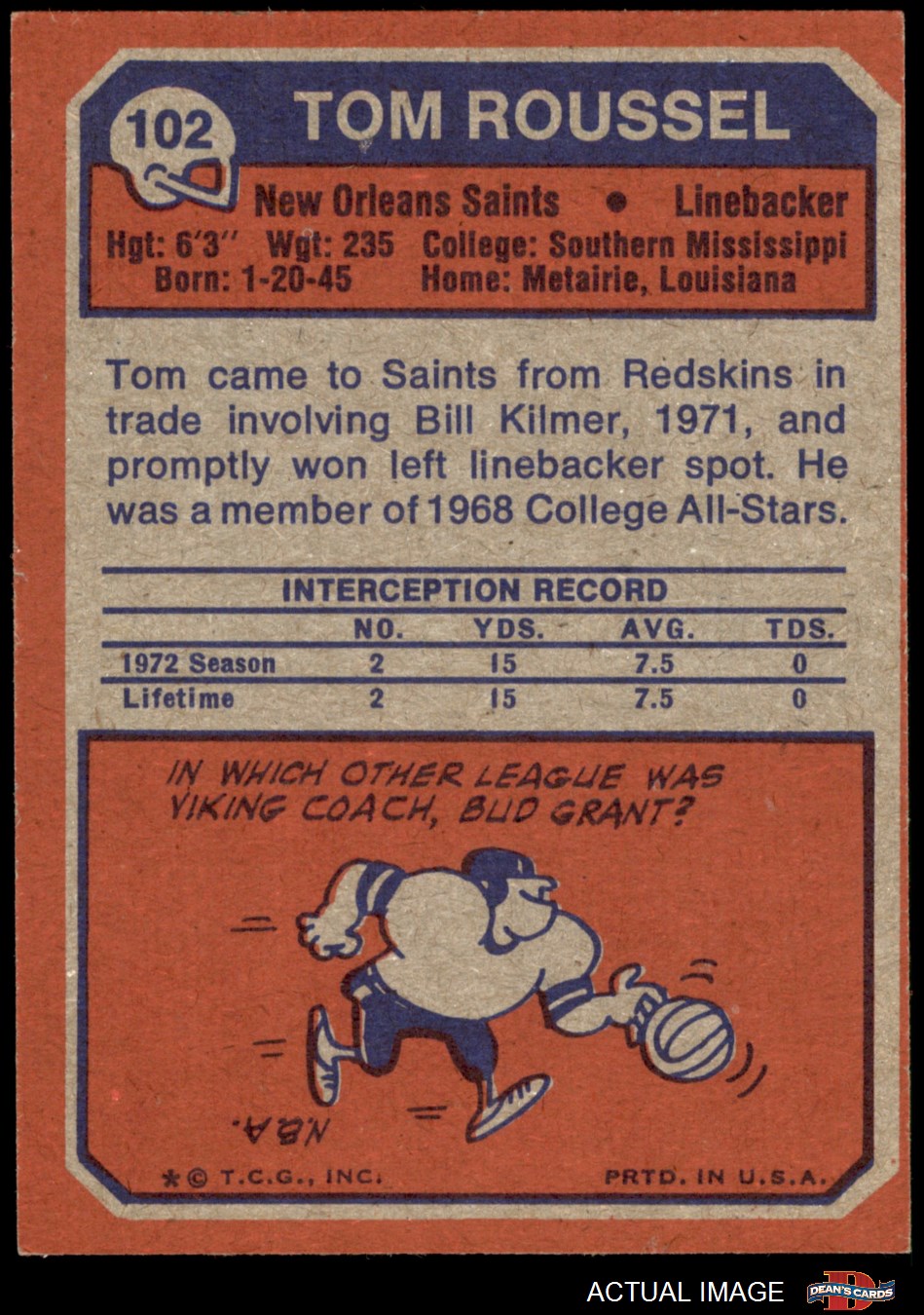 1973 Topps #102 Tom Roussel 4 - VG/EX