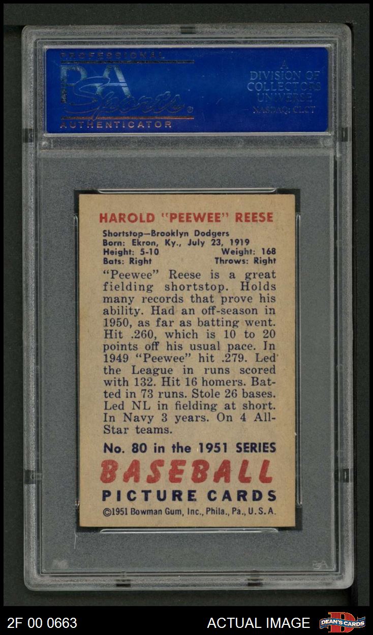 1951 Bowman #80 Pee Wee Reese PSA 5 - EX