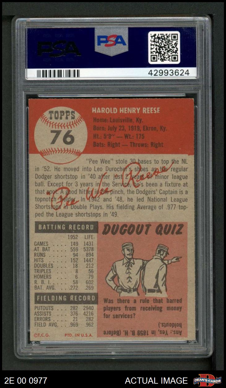 1953 Topps #76 Pee Wee Reese PSA 5 - EX