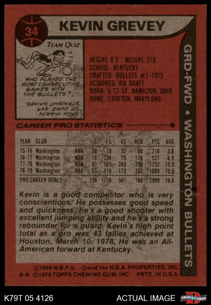 1979 Topps #34 Kevin Grevey 7.5 - NM+