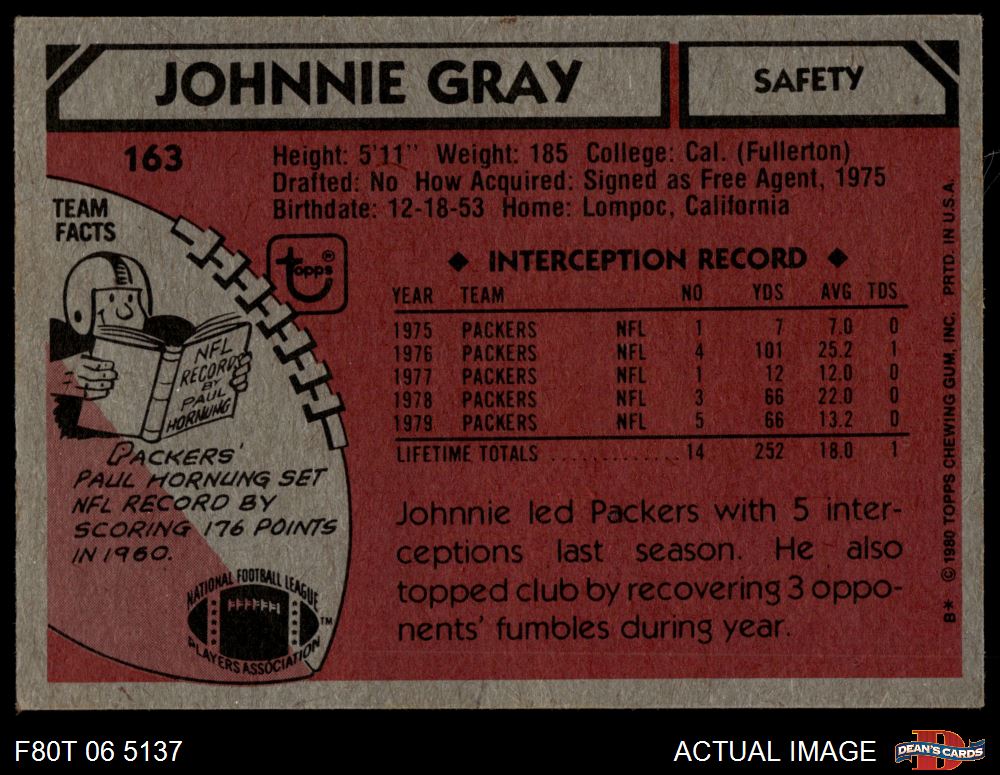 1980 Topps #163 Johnnie Gray