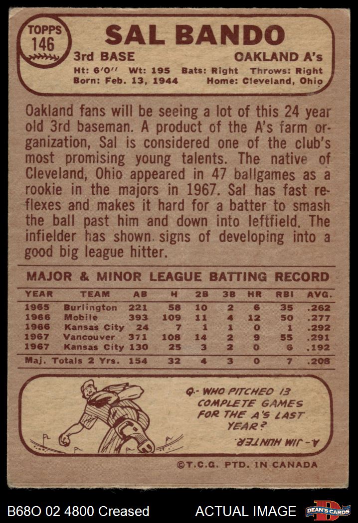 1968 O-Pee-Chee #146 Sal Bando 2 - GOOD