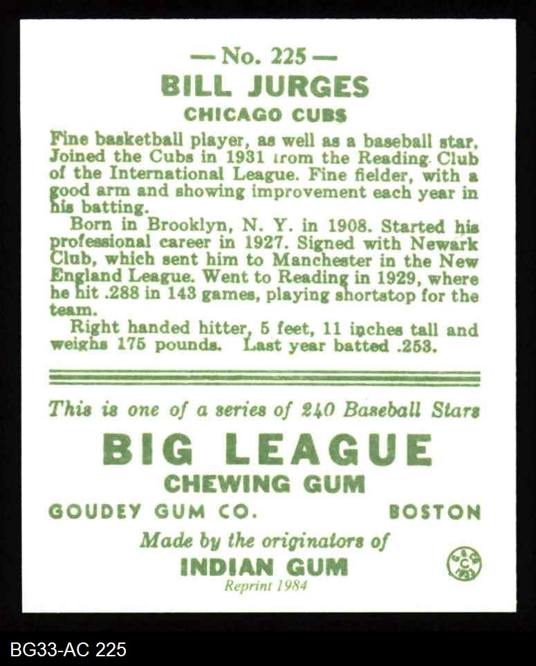 1933 Goudey Reprint (1,589 available)1933 Goudey Reprint Cubs (52 available)