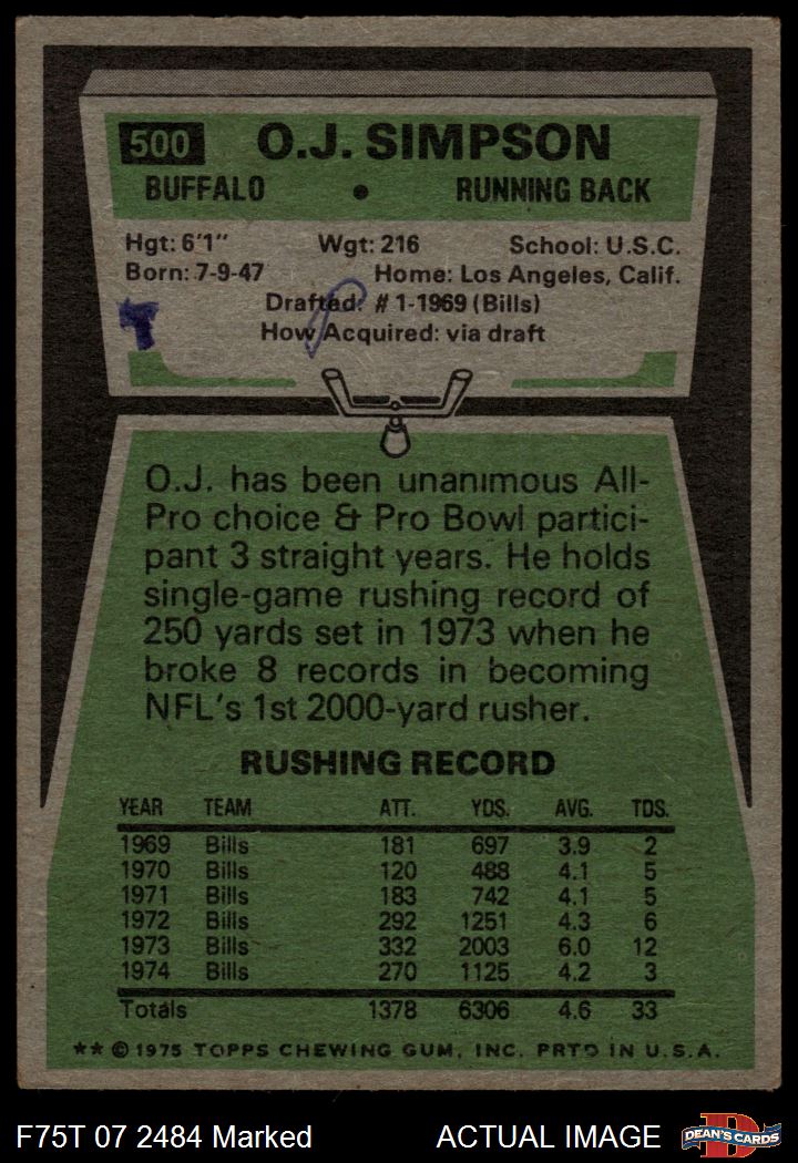 1975 Topps #500 O.J. Simpson 1.5 - FAIR