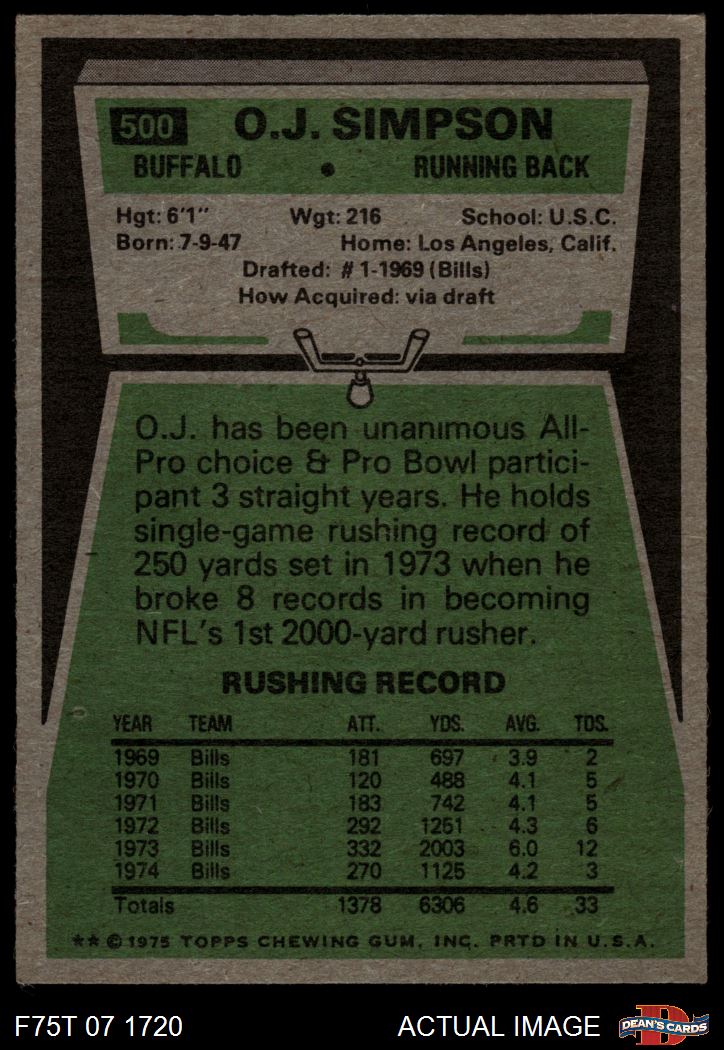 1975 Topps #500 O.J. Simpson 4.5 - VG/EX+