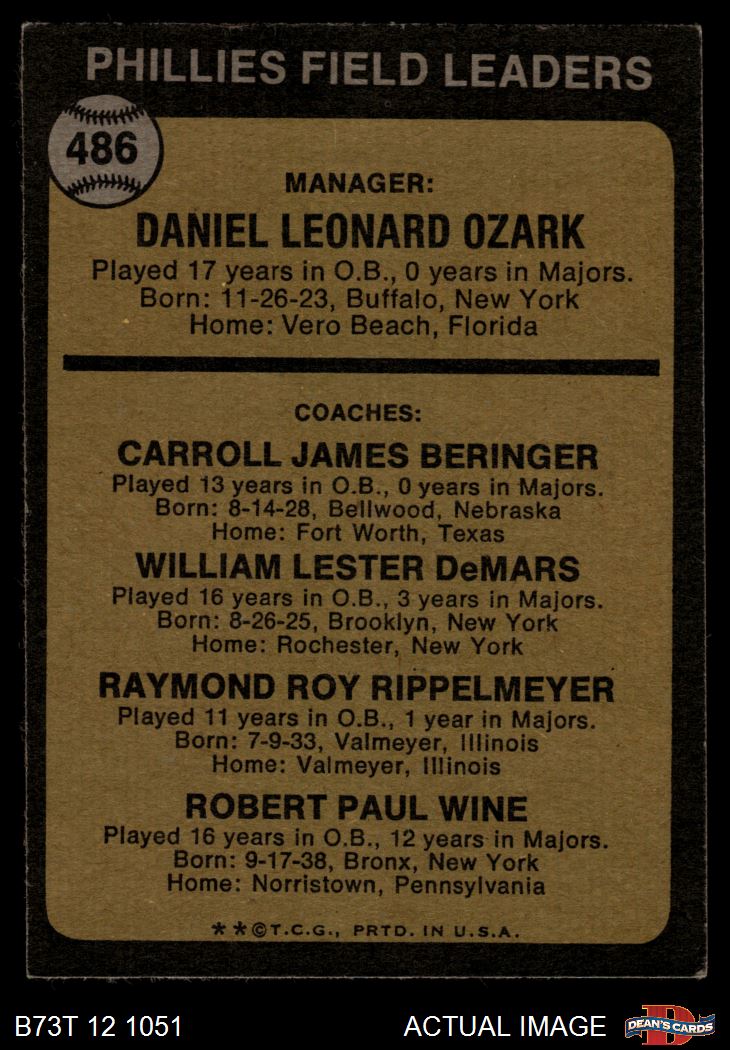 Danny Ozark / Carroll Beringer / Billy De Mars / Ray Rippelmeyer / Bobby Wine (32 available)