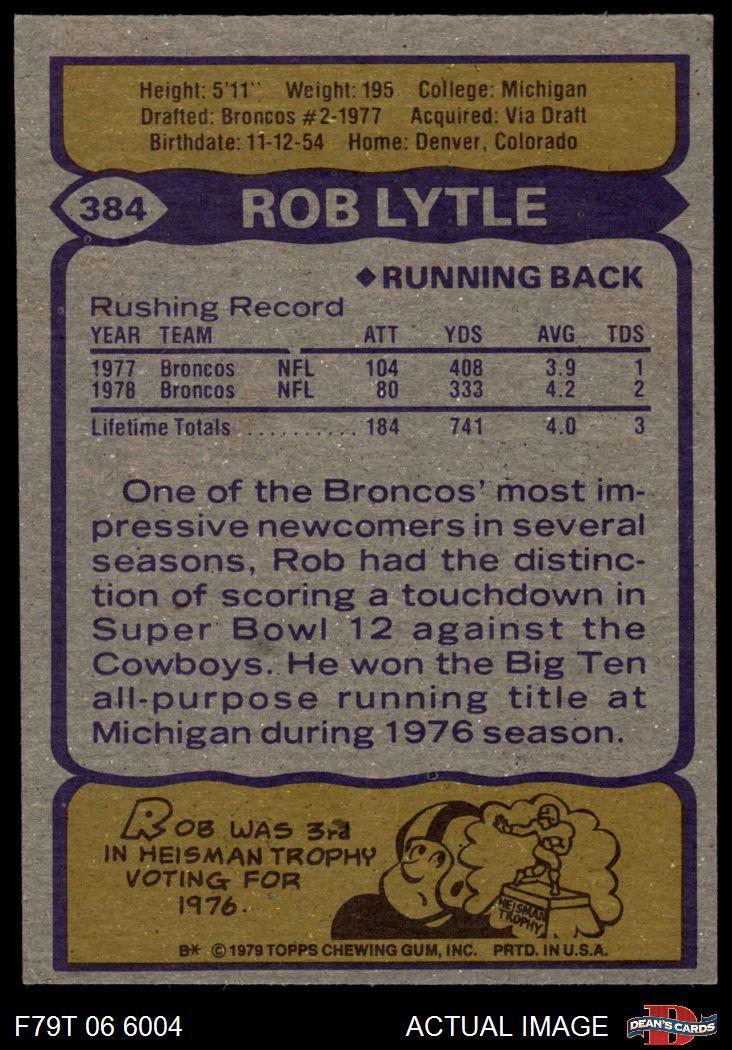 1979 Topps #384 Rob Lytle 6 - EX/MT