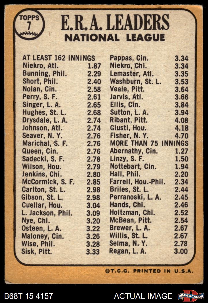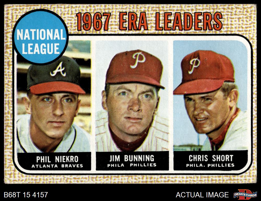 1968 Topps #7 A - Jim Bunning / Phil Niekro / Chris Short NL ERA Leaders 4 - VG/EX