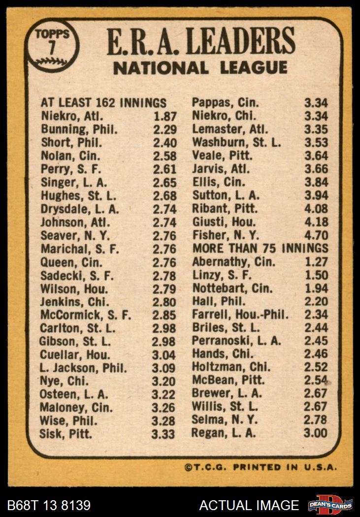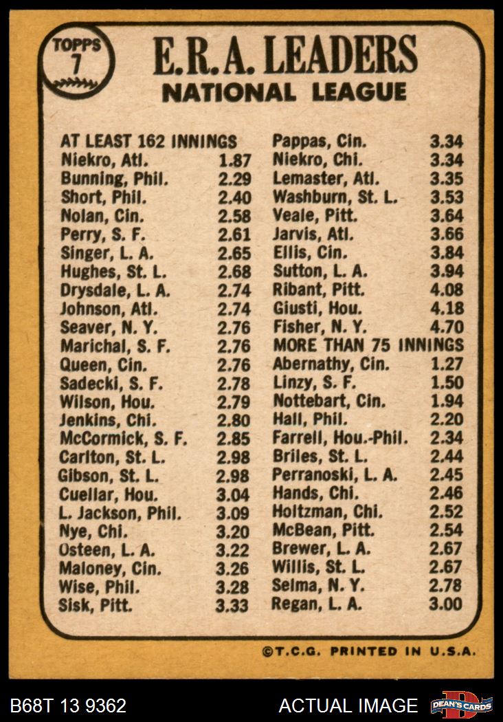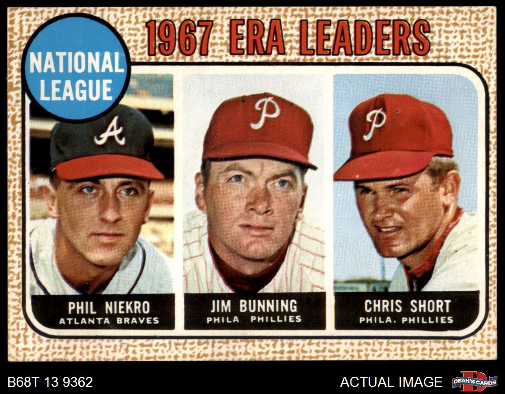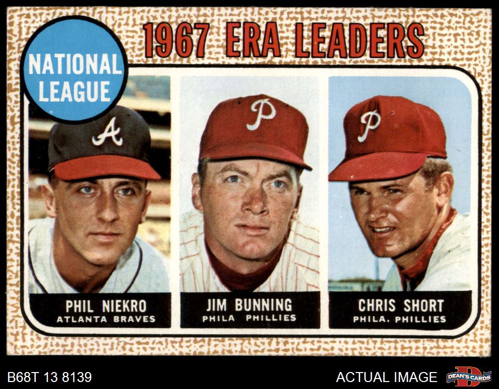 1968 Topps #7 A - Jim Bunning / Phil Niekro / Chris Short NL ERA Leaders 7 - NM