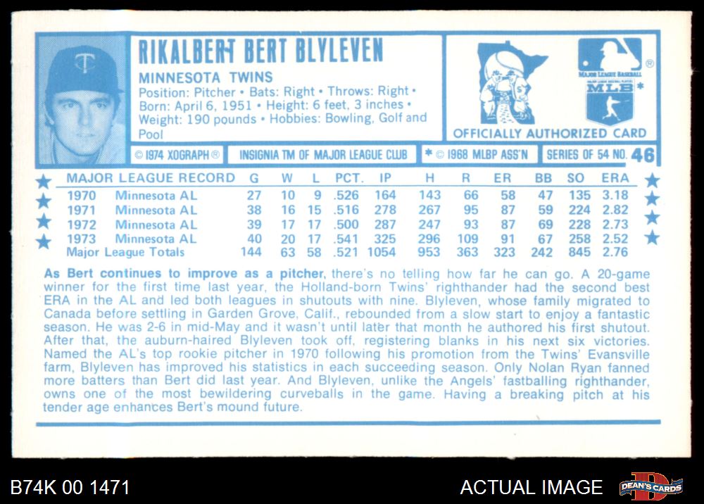 1974 Kellogg's #46 Bert Blyleven 8 - NM/MT