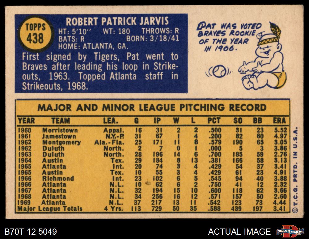 1970 Topps #438 Pat Jarvis 4 - VG/EX