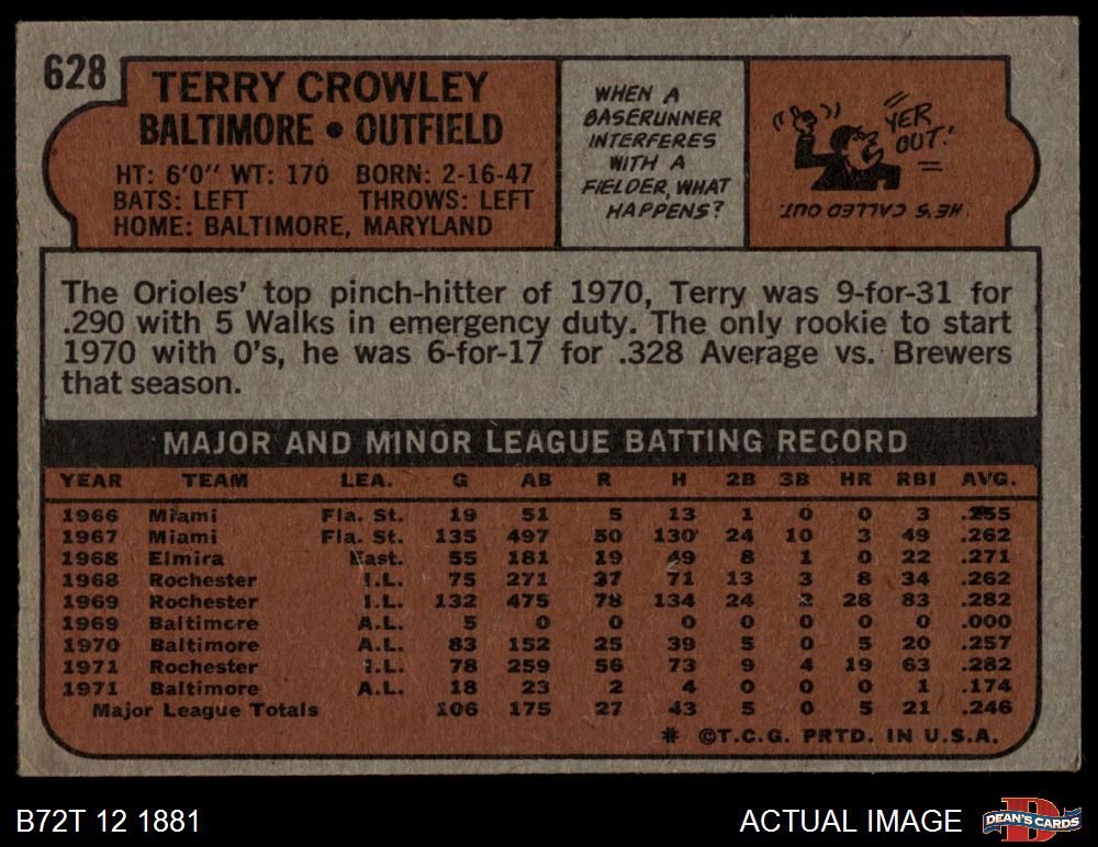 1972 Topps #628 Terry Crowley 4 - VG/EX