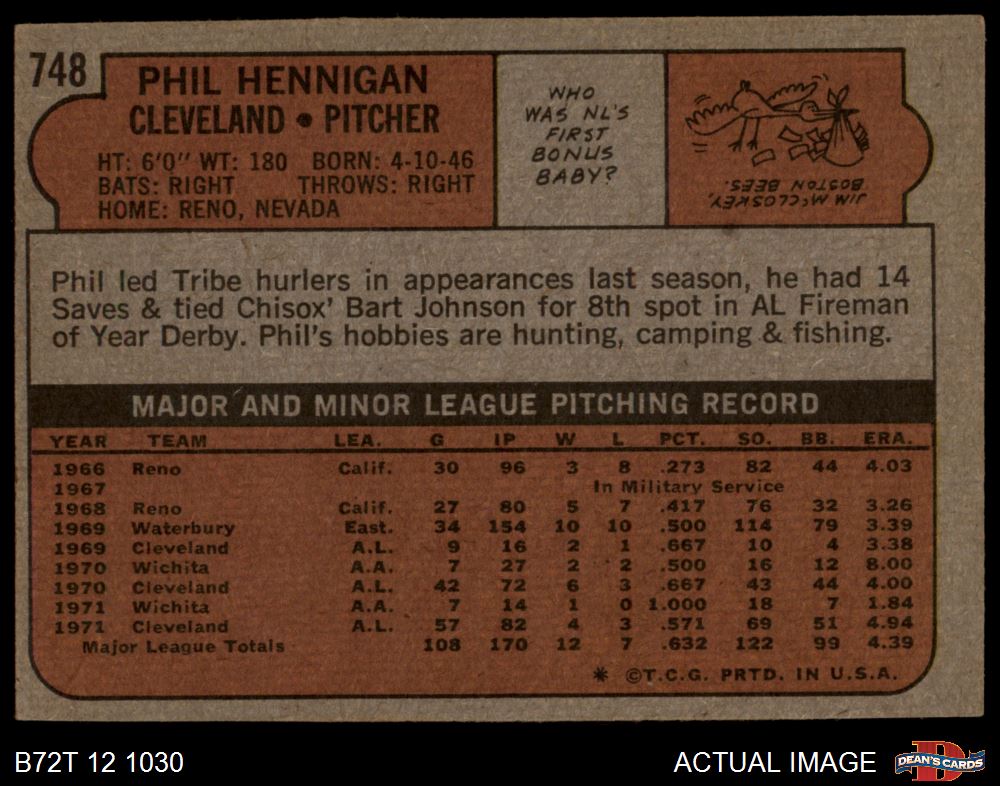 1972 Topps #748 Phil Hennigan 2 - GOOD