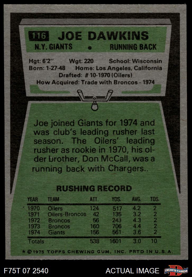1975 Topps #116 Joe Dawkins