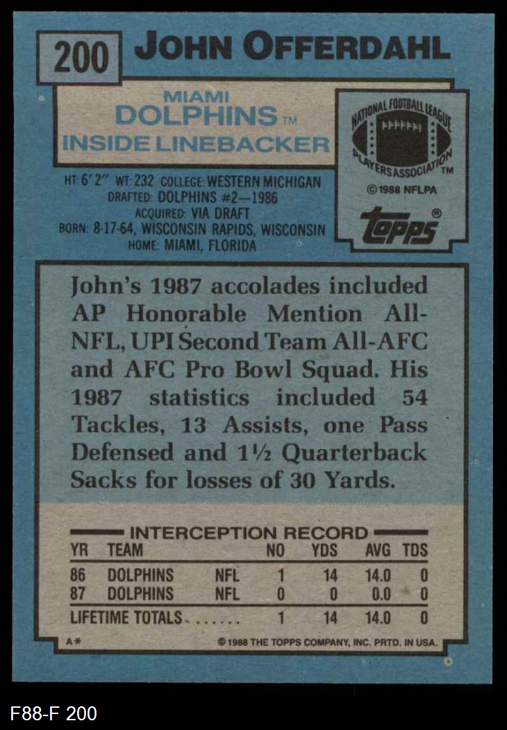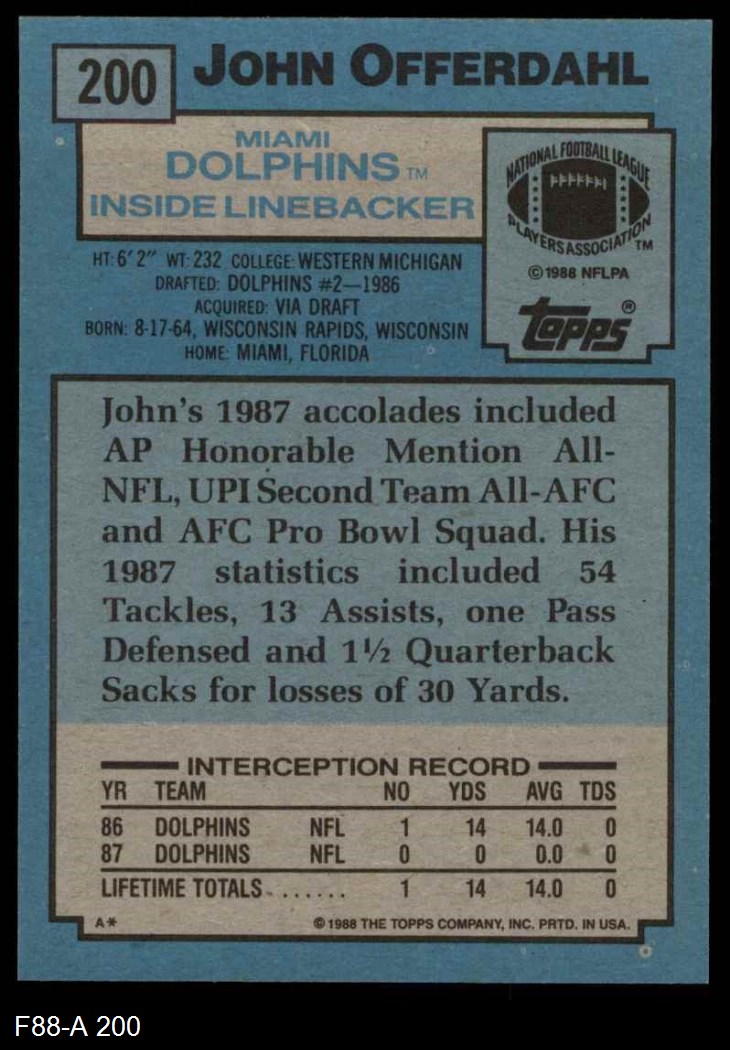 1988 Topps #200 John Offerdahl