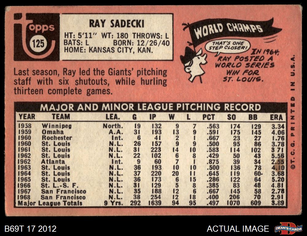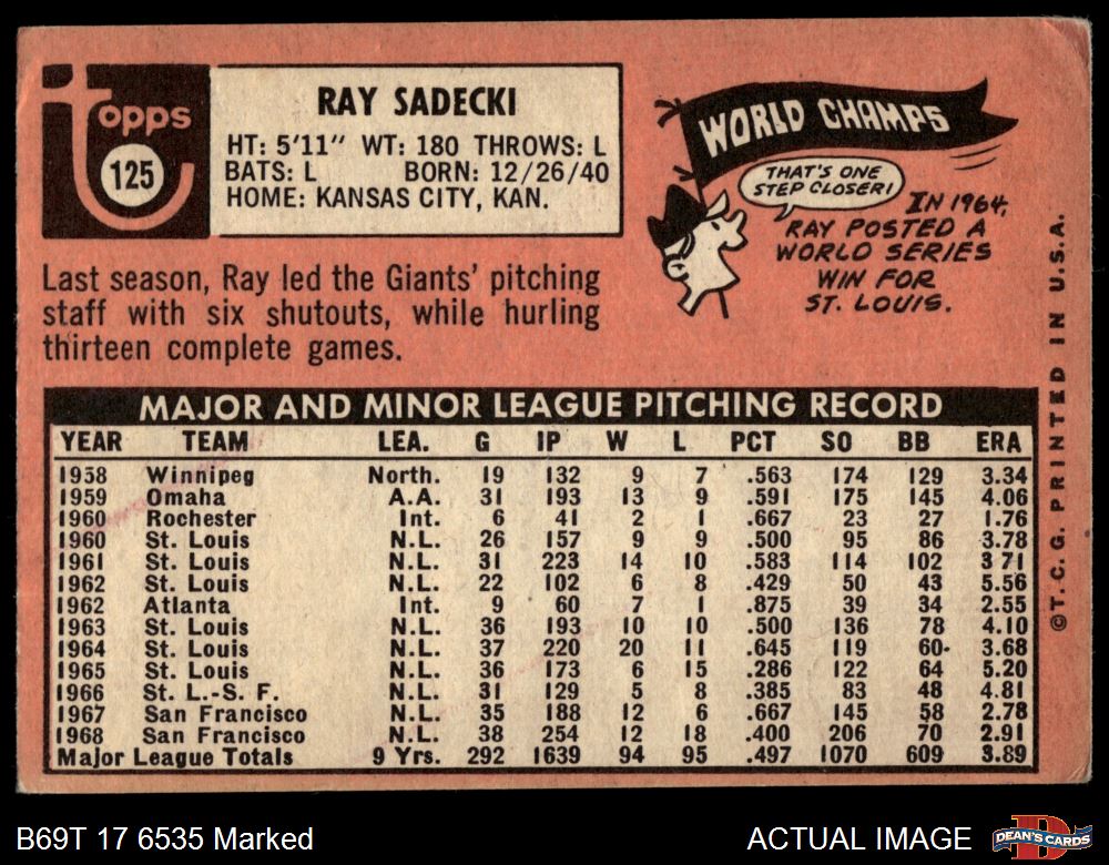 1969 Topps #125 Ray Sadecki 1.5 - FAIR