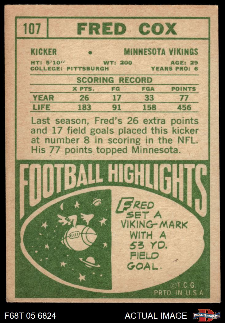 1968 Topps Football Cards (2,555 available)1968 Topps Vikings (108 available)