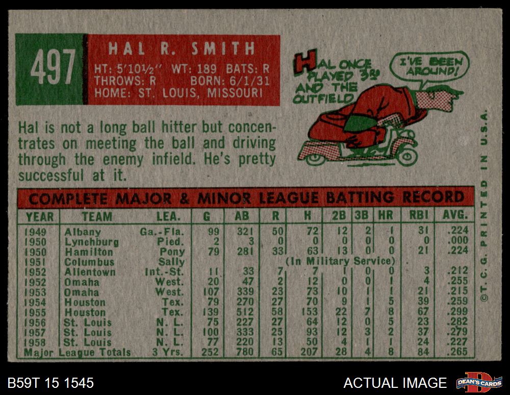 1959 Topps #497 Hal R. Smith 3 - VG