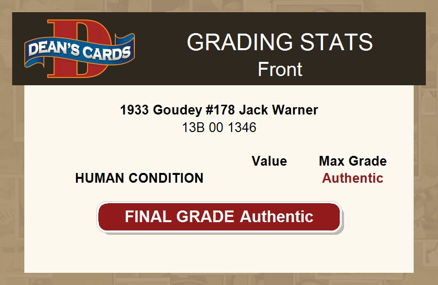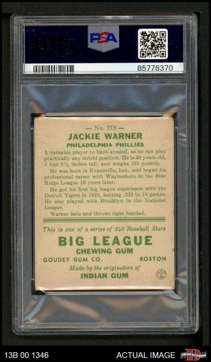 1933 Goudey #178 Jack Warner PSA AUTHENTIC