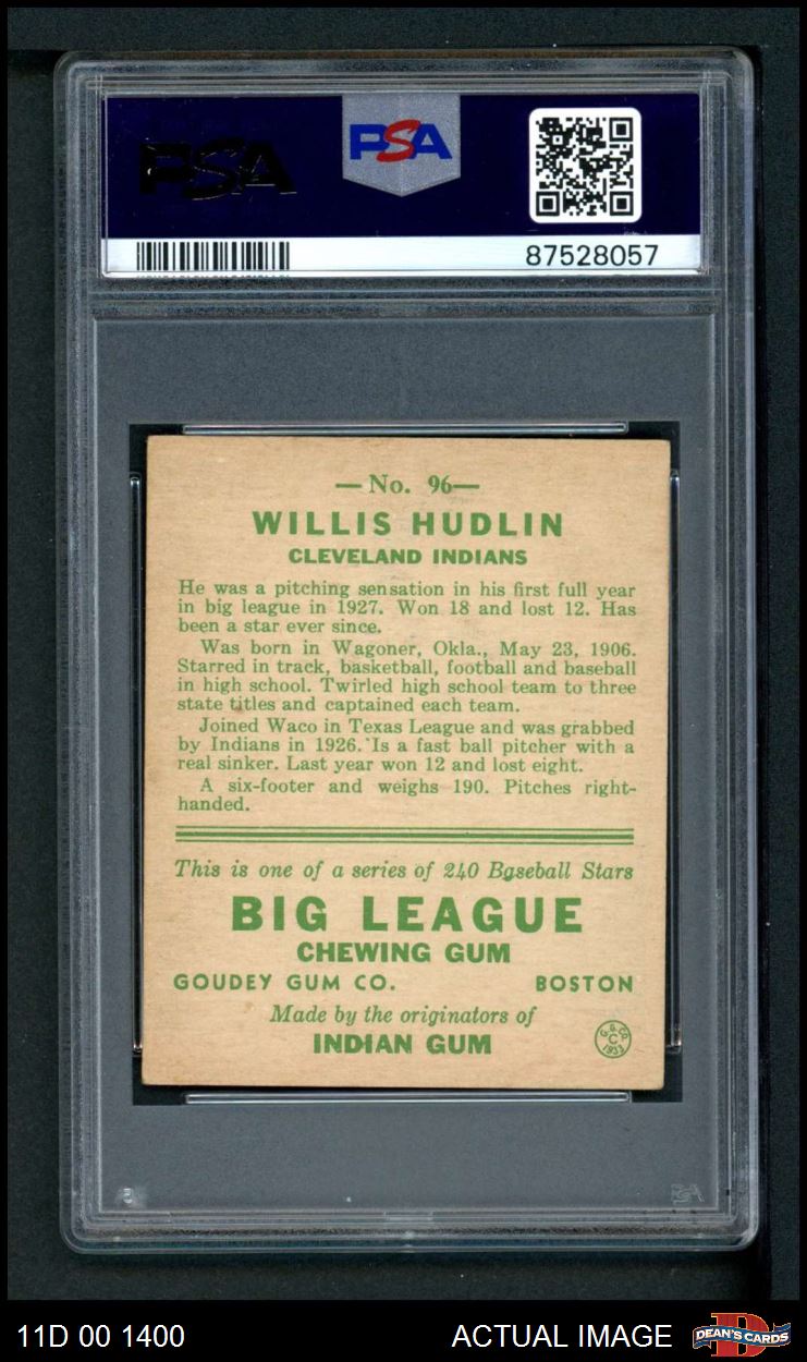 1933 Goudey #96 Willis Hudlin PSA 4 - VG/EX