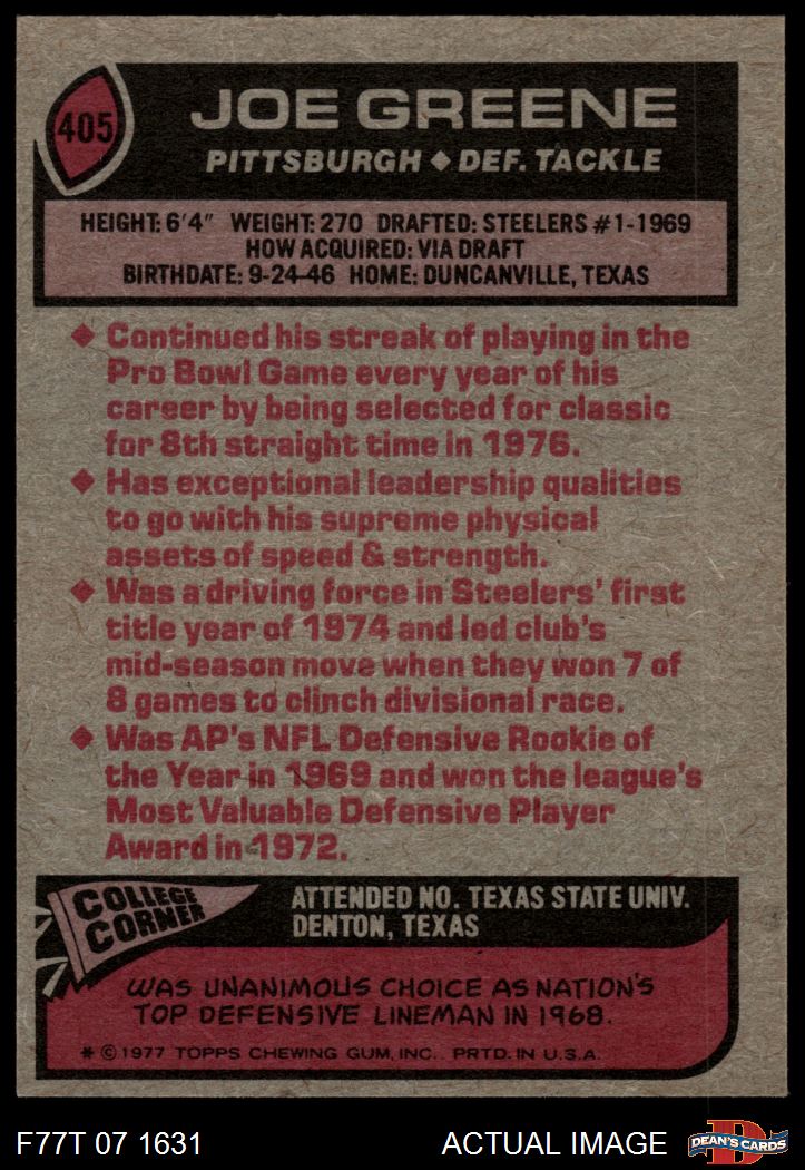 1977 Topps #405 Joe Greene 4 - VG/EX