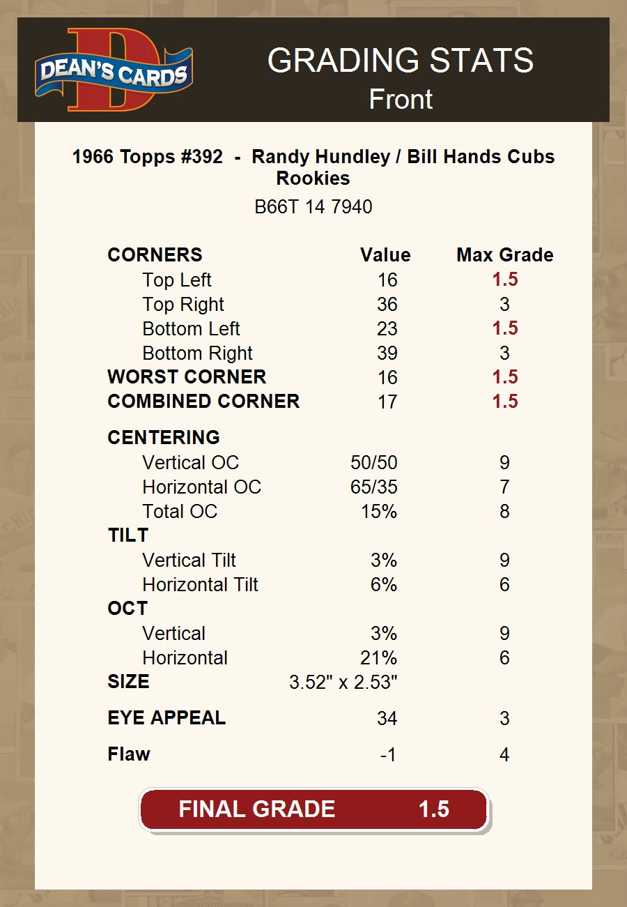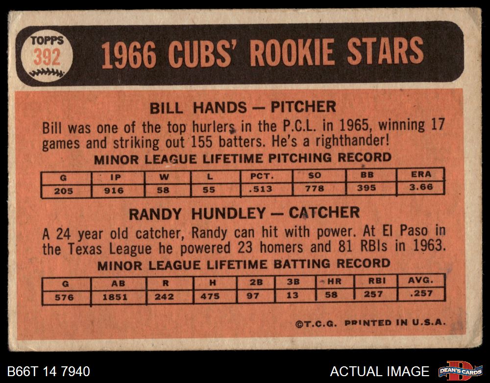 1966 Topps #392 - Randy Hundley / Bill Hands Cubs Rookies 1.5 - FAIR