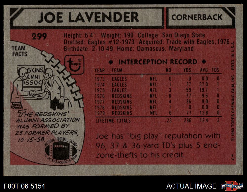1980 Topps #299 Joe Lavender