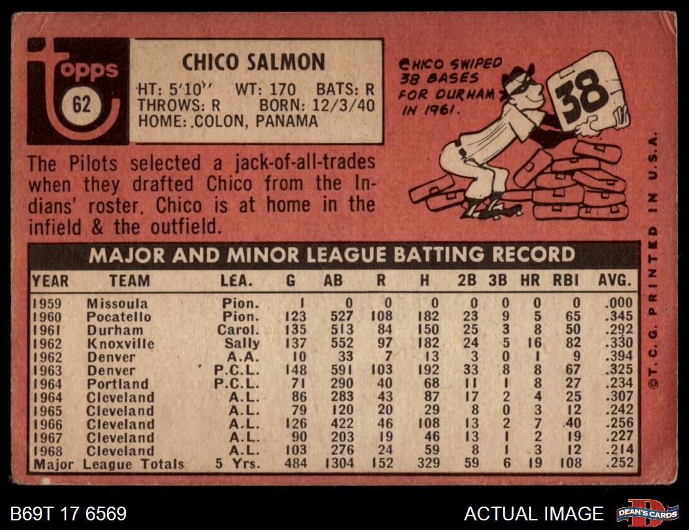 1969 Topps #62 Chico Salmon 1.5 - FAIR