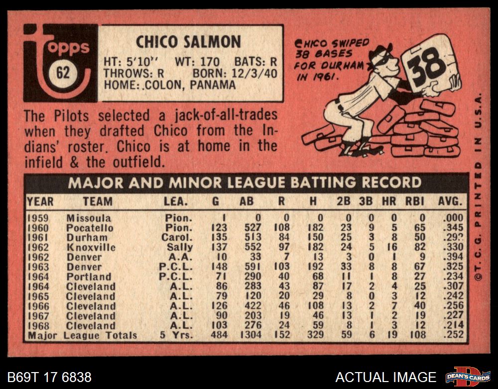 1969 Topps #62 Chico Salmon 7 - NM