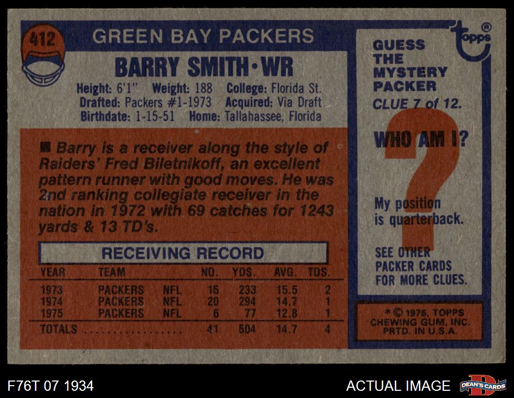 1976 Topps #412 Barry Smith 5 - EX
