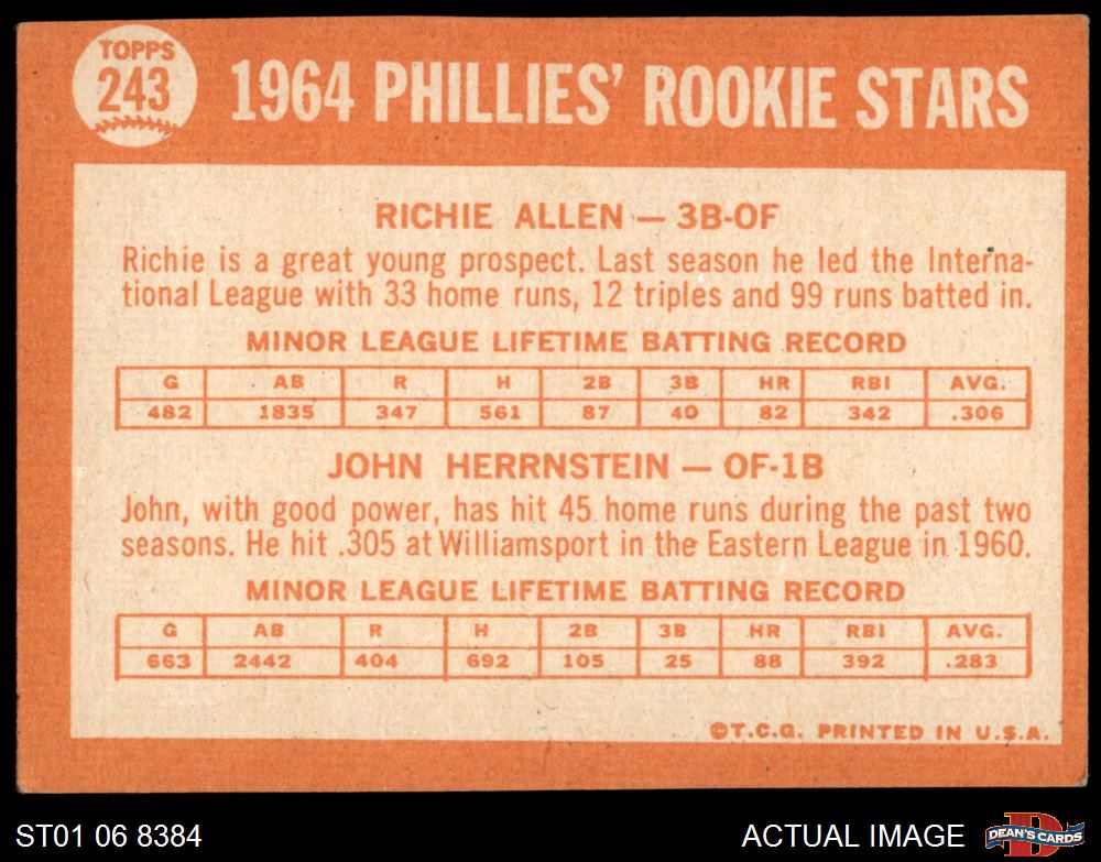 1964 Topps #243 - Rich Allen / John Herrnstein Phillies Rookies 3.5 - VG+