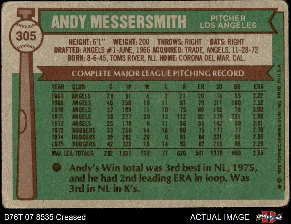 1976 Topps #305 Andy Messersmith 1 - POOR