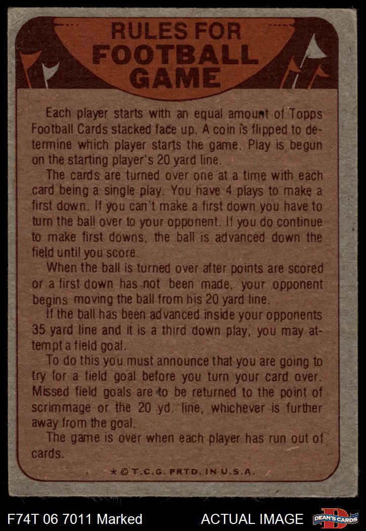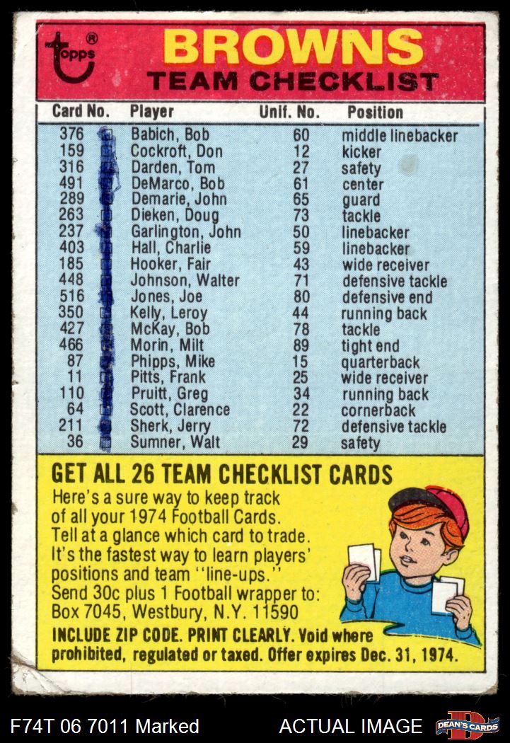1974 Topps Checklist Cleveland Browns Team 1 - POOR
