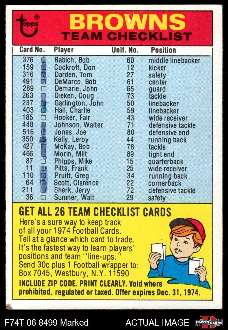 1974 Topps Checklist  Cleveland Browns Team Front Thumbnail