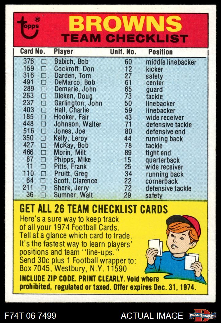 1974 Topps Checklist Cleveland Browns Team 6 - EX/MT