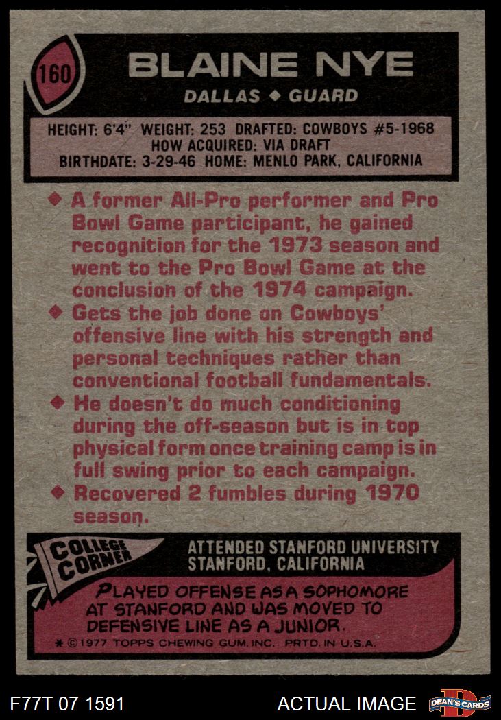 1977 Topps #160 Blaine Nye 6 - EX/MT