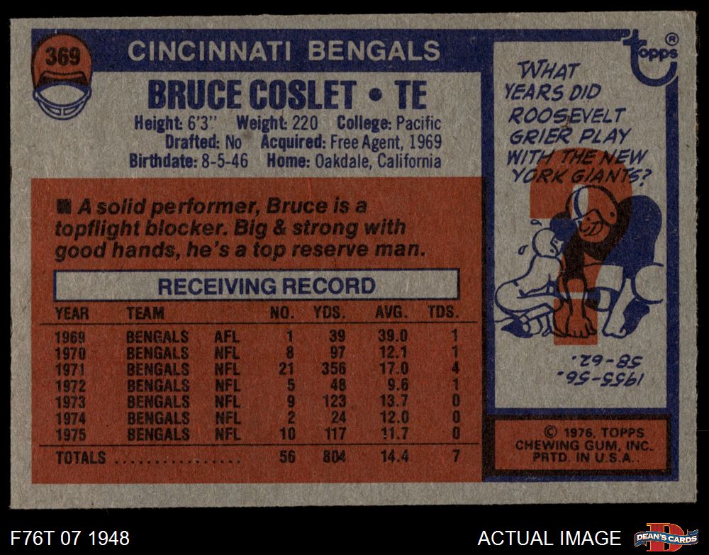1976 Topps Football Cards (7,498 available)1976 Topps Bengals (419 available)