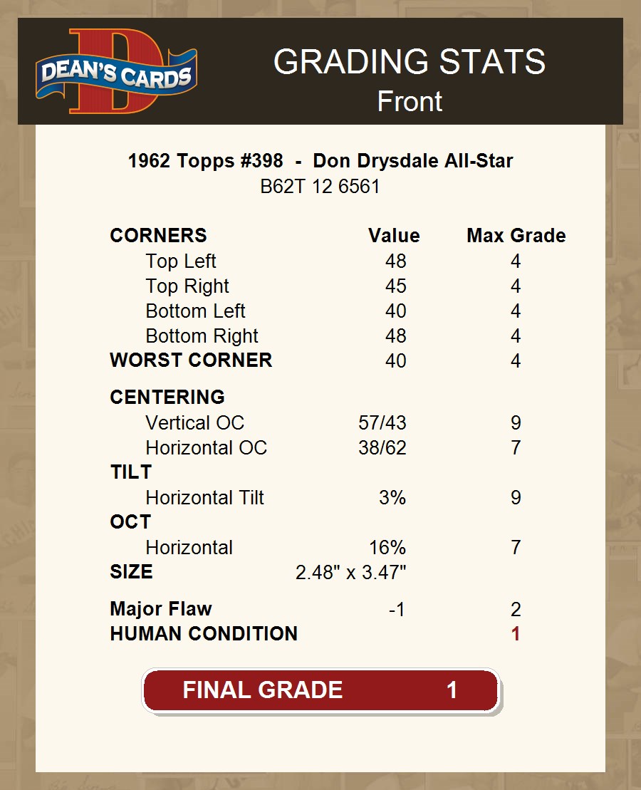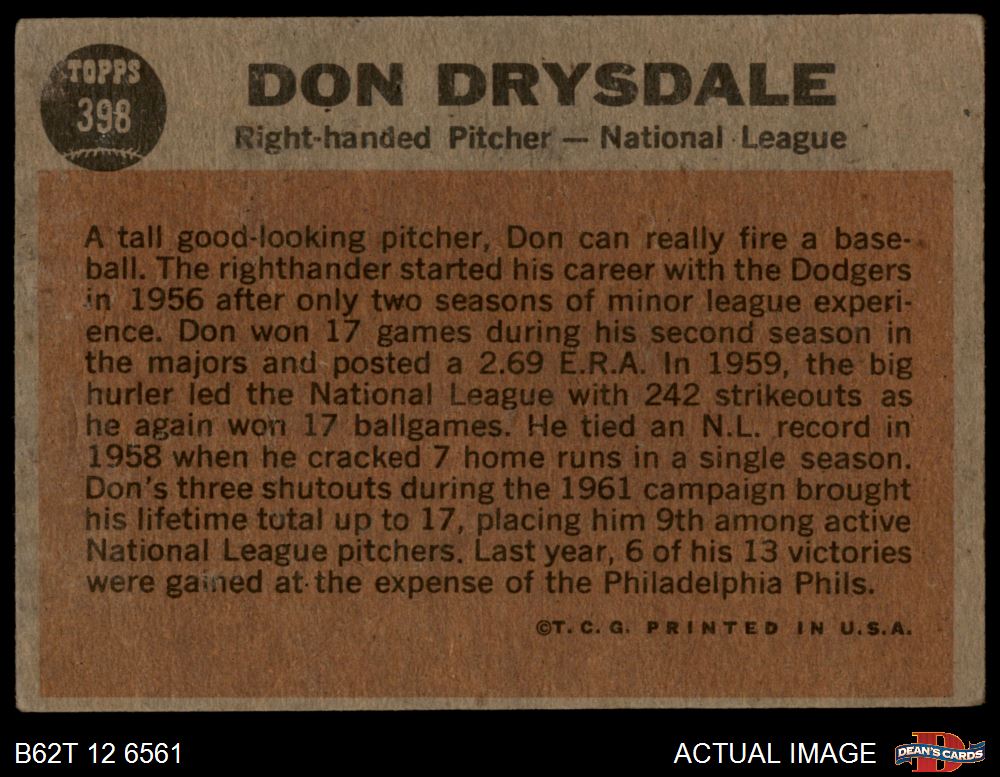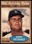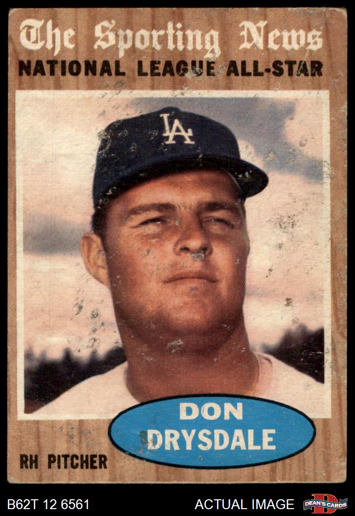 1962 Topps #398 - Don Drysdale All-Star 1 - POOR