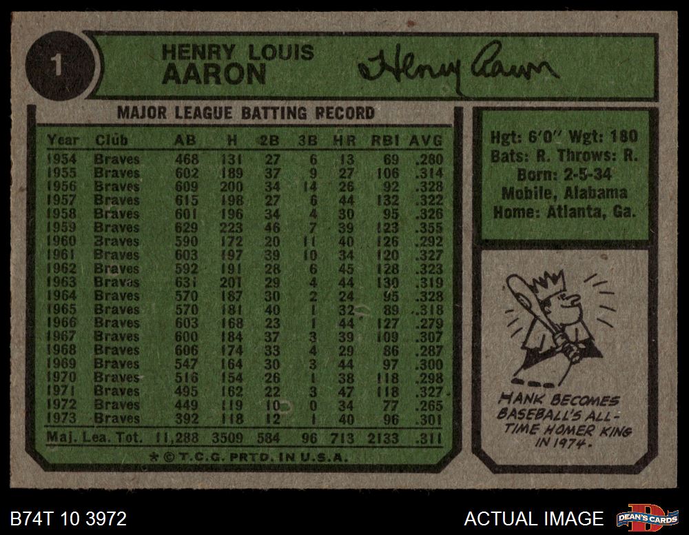 1974 Topps #1 New All-Time Home Run King