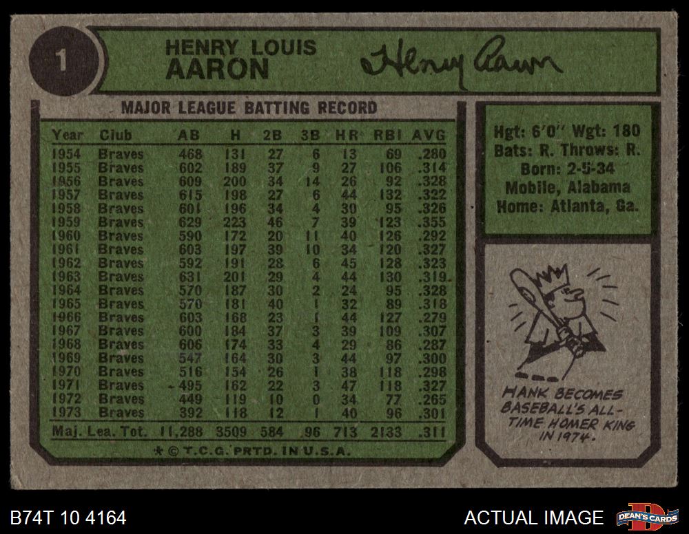 1974 Topps #1 - Hank Aaron New All-Time Home Run King 3 - VG