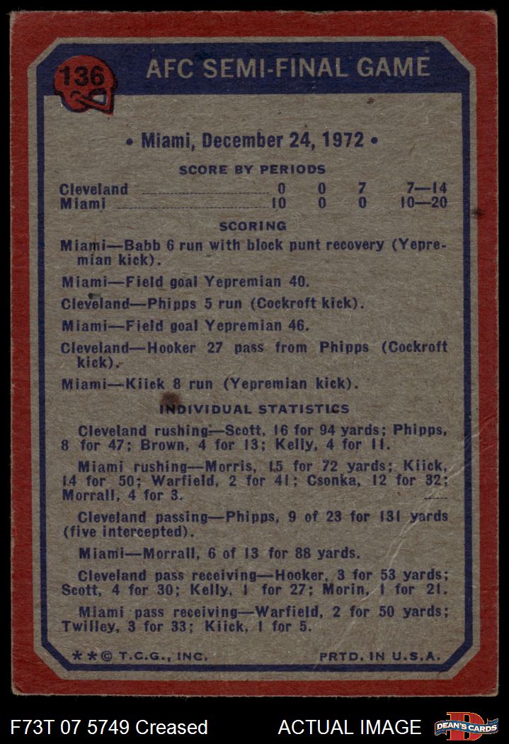 1973 Topps #136 - Bob Griese / Larry Csonka / Jim Kiick AFC Semi-Final 2 - GOOD