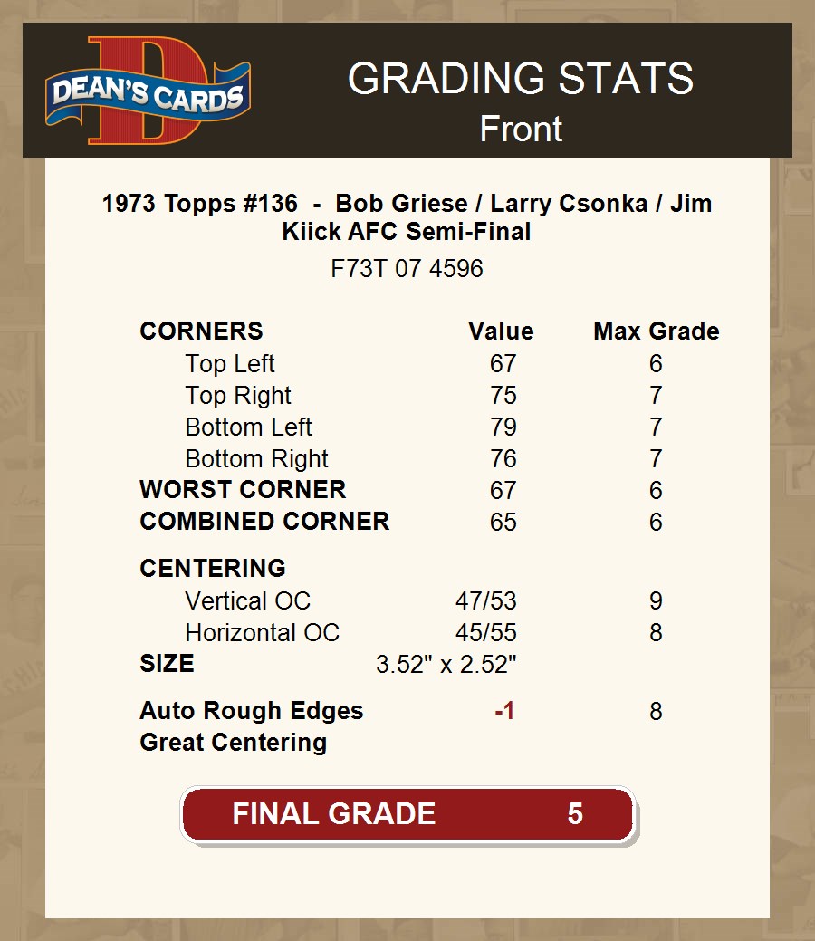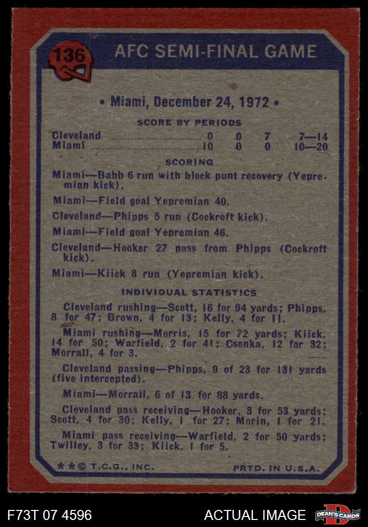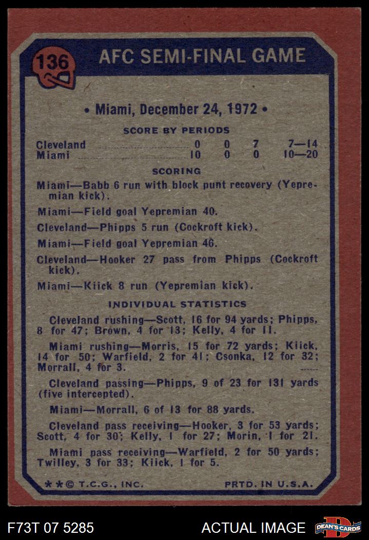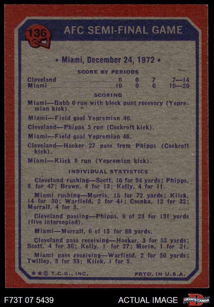 1973 Topps #136 - Bob Griese / Larry Csonka / Jim Kiick AFC Semi-Final 5 - EX