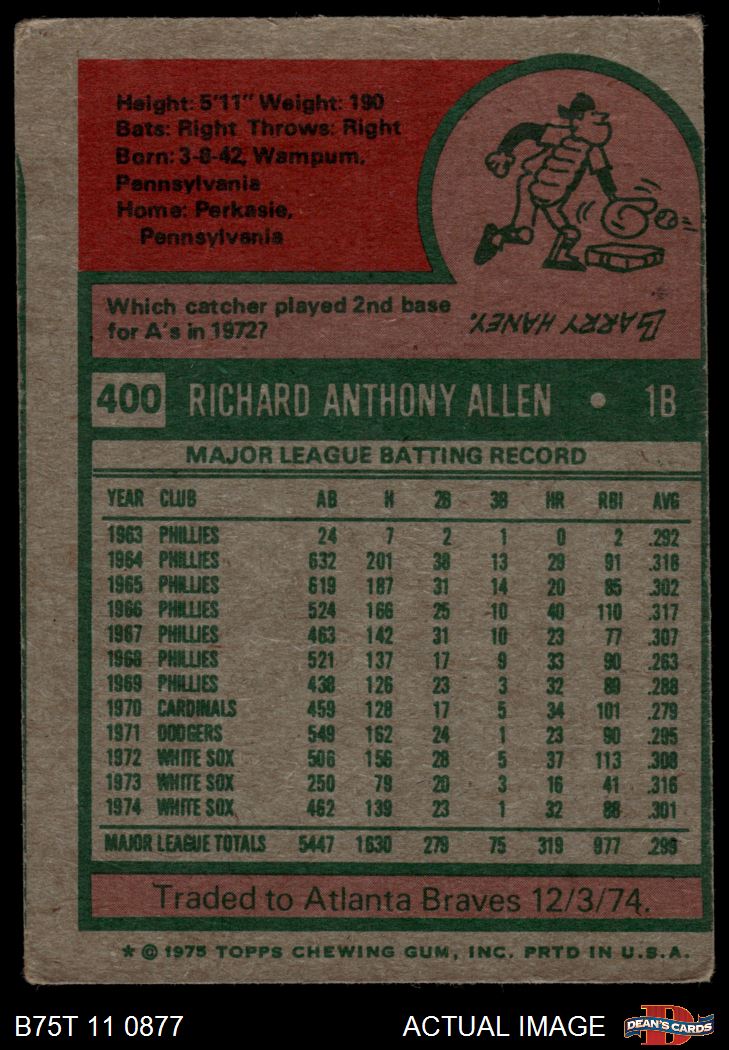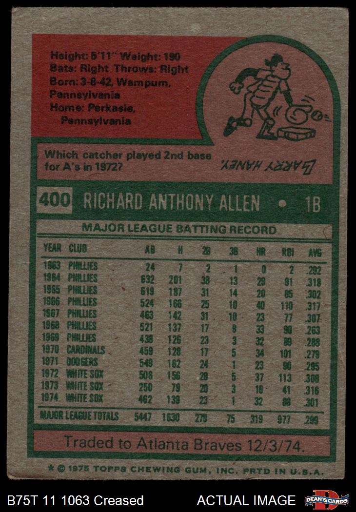 1975 Topps #400 Rich Allen 2 - GOOD