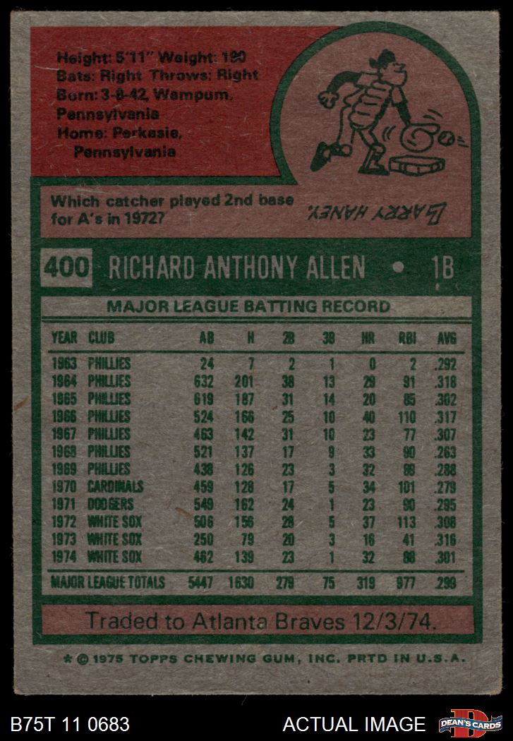 1975 Topps #400 Rich Allen 3 - VG