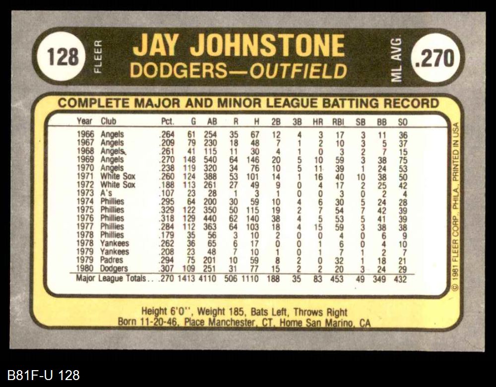 1981 Fleer #128 Jay Johnstone 8 - NM/MT