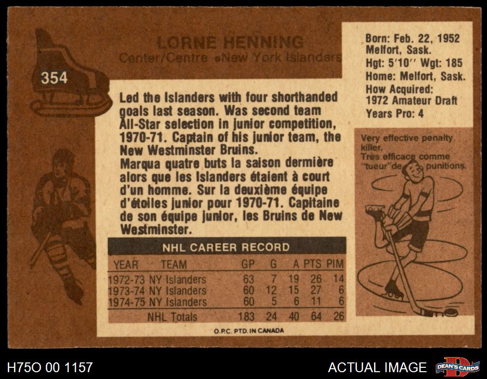 1975 O-Pee-Chee NHL #354 Lorne Henning 7 - NM