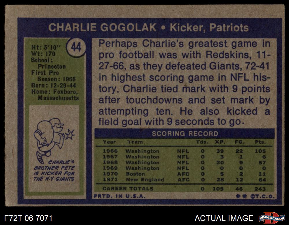 1972 Topps Football Cards (6,874 available)1972 Topps Patriots (329 available)